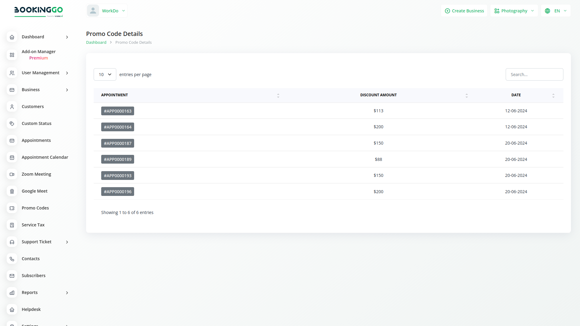 Bookinggo SaaS offers a robust promo code module designed to incentivize purchases and boost sales for businesses. With this feature, customers can apply promo codes during checkout, unlocking discounts, and special offers. Not only does this enhance the customer shopping experience, but it also provides an opportunity for businesses to attract new customers and retain existing ones through targeted promotions.